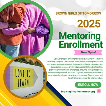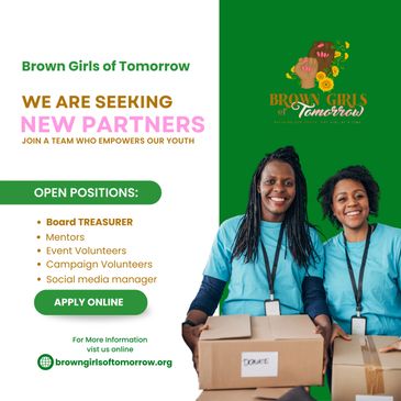 To create a world where every young girl, regardless of her background, feels empowered, supported, and inspired to reach her fullest potential. At Brown Girls of Tomorrow, we envision a future where our mentees grow into confident, compassionate leaders who positively impact their communities and beyond. Through mentorship, education, and sisterhood, we strive to cultivate a legacy of empowerment and success for generations to come.